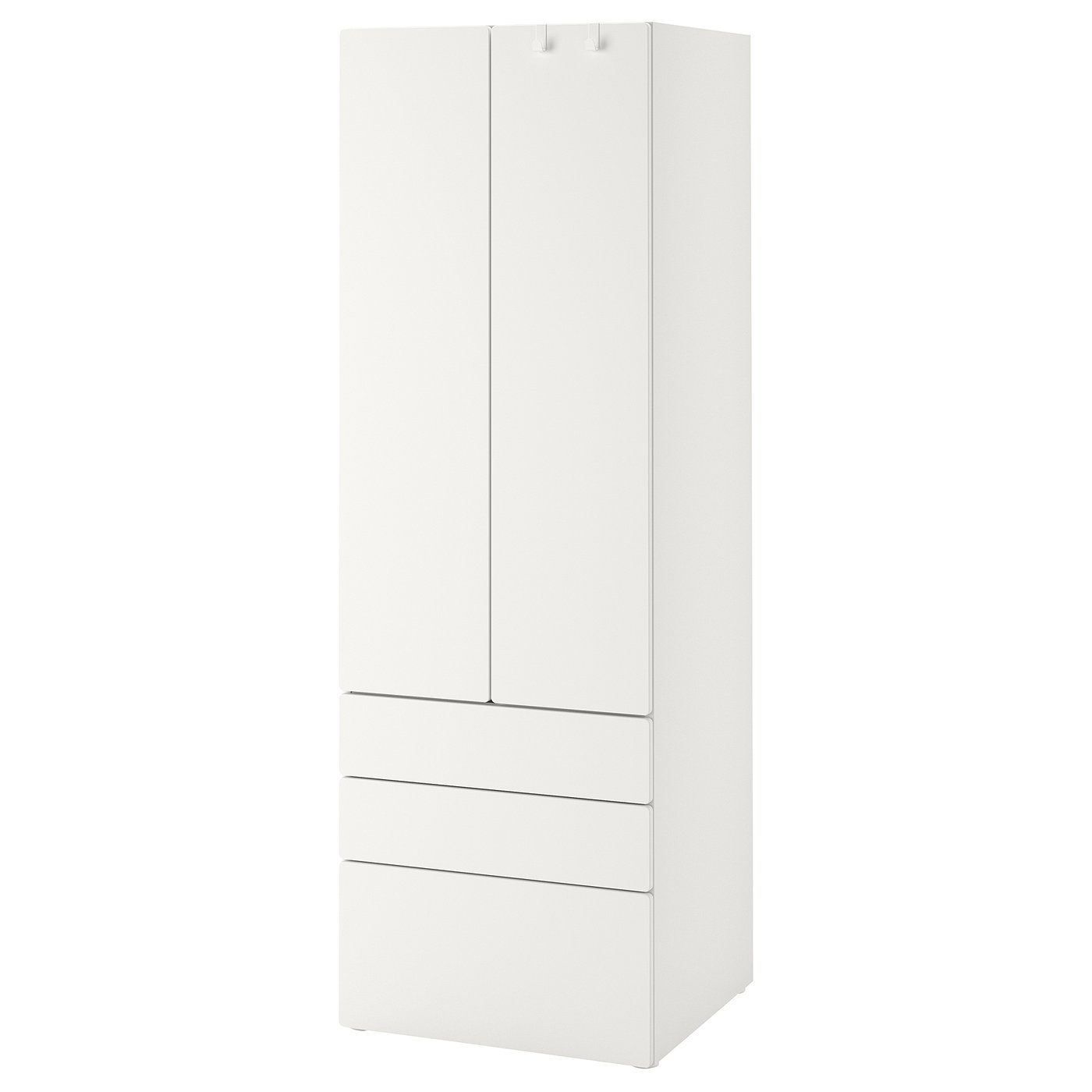 This 60x42x181 cm white wardrobe features three spacious drawers for organized clothing storage. The tall, narrow design optimizes vertical space while fitting comfortably in small bedrooms. The bright white finish creates a light, airy aesthetic, and the smooth-gliding drawer mechanisms ensure easy access to contents. Perfect for folded items like sweaters, linens, or children’s clothing, this piece combines practical functionality with clean-lined aesthetics. The 42cm depth offers generous storage capacity while maintaining a streamlined profile. Thoughtful details include soft-close technology and sturdy drawer construction. A vertical storage solution that maximizes capacity through efficient drawer configurations in a space-conscious design.